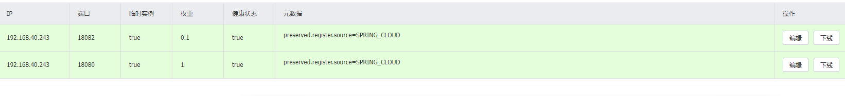 public class PpedApiApplication { public static void main(String[] args) { SpringApplication.run(PpedApiApplication.class, args); } @Bean public IRule loadBalanceRule(){ return new NacosWeightedRule(); } } - 在控制台给两个服务设置权重,可以发现两服务按权重交替被访问