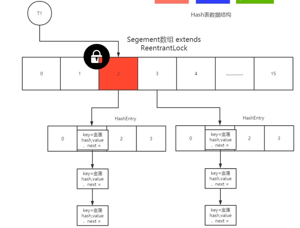 Java7 中 ConcurrentHashMap 使用的分段锁,也就是每一个 Segment 上同时只有一个线程可以操作,每一个 Segment 都是一个类似 HashMap 数组的结构,它可以扩容,它的冲突会转化为链表。但是 Segment 的个数一但初始化就不能改变。