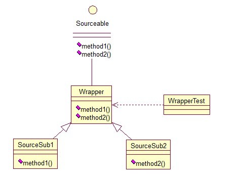 public class DecoratorTest { public static void main(String[] args) { Sourceable source = new Source(); Sourceable obj = new Decorator(source); obj.method(); } }