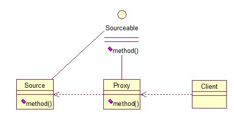public interface Sourceable { public void method(); } public class Source implements Sourceable { @Override public void method() { System.out.println("the original method!"); } } public class Proxy implements Sourceable { private Source source; public Proxy(){ super(); this.source = new Source(); } @Override public void method() { before(); source.method(); atfer(); } private void atfer() { System.out.println("after proxy!"); } private void before() { System.out.println("before proxy!"); } } public class ProxyTest { public static void main(String[] args) { Sourceable source = new Proxy(); source.method(); } }代理模式的应用场景: